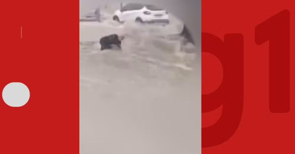 O acidente foi registrado em vídeo. Nas imagens, o homem aparece sendo levado pela correnteza, mas consegue sair da água e se sentar na calçada.
